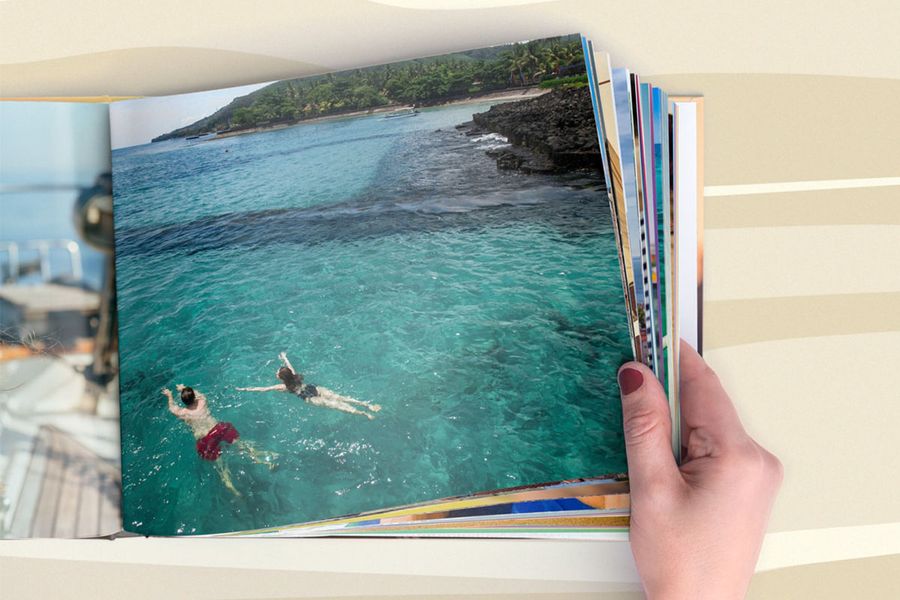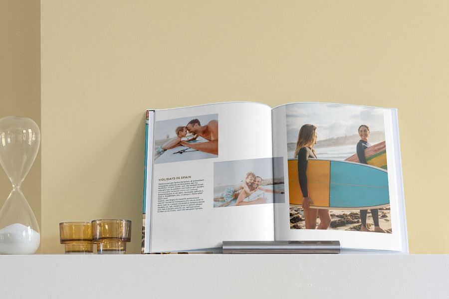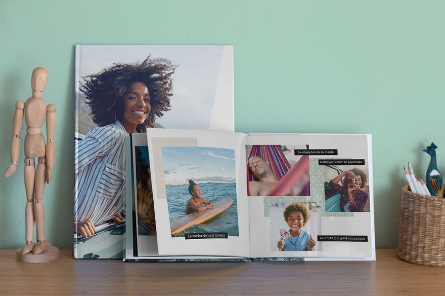 Si vous souhaitez apporter un petit plus à vos plus belles photos de votre livre photo, choisissez un livre photo premium à ouverture à plat. Ce format est idéal pour mettre en valeur une photo particulièrement réussie. Il vous permet d’imprimer une image sur une double page sans que le pli du livre ne gêne l’intégrité de la photo. Si vous envisagez poser votre livre photo d’été sur la table de salon, laissez ces pages ouvertes afin que vos invités puissent les consulter.