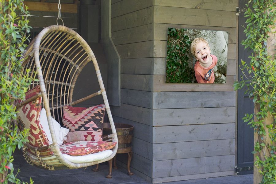 Si votre cabanon de jardin sert également d’atelier ou de refuge, créez un contraste saisissant avec l’atmosphère rustique grâce à des décorations murales modernes en plexiglas. Pour préserver une ambiance informelle de plein air, ajoutez une photo des aventures de votre animal de compagnie ou une photo de votre famille lors d’une belle randonnée ensoleillée.