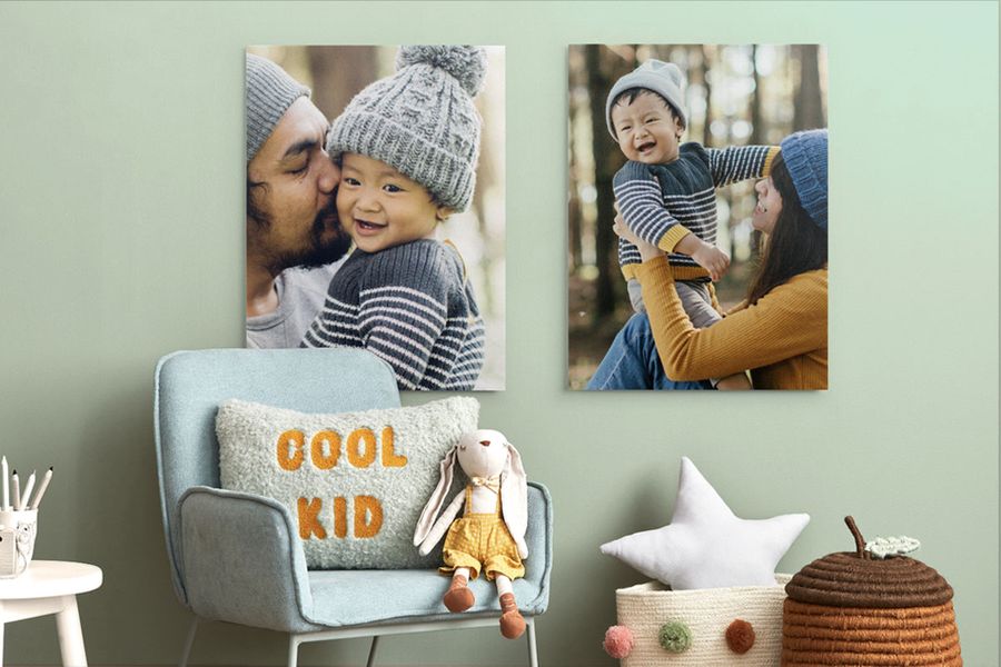 Immortalisez les premiers mois de votre enfant avec des tirages sur PVC. Ce matériau léger, se combine très bien avec d’autres matériaux de décoration murale, de sorte que votre collection de photos de bébé peut s’agrandir au fur et à mesure de l’évolution de vos petits bouts de chou.