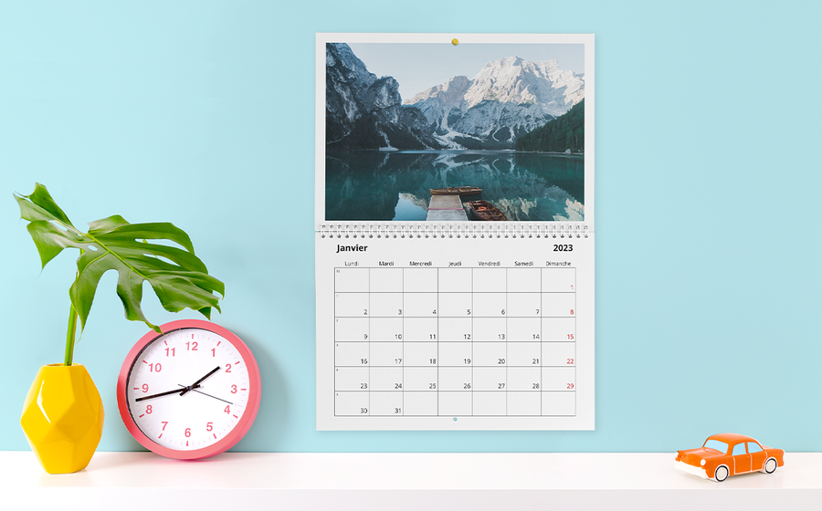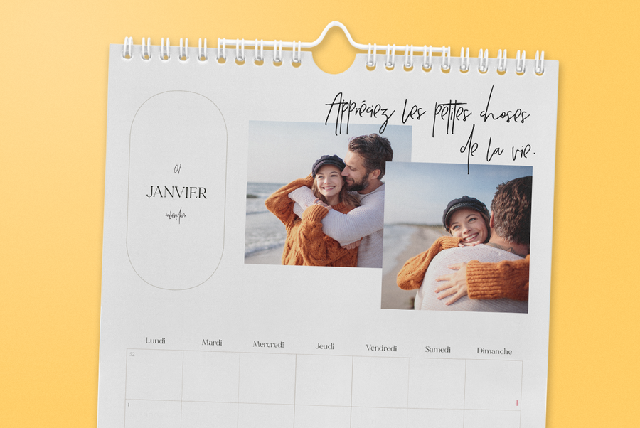Un calendrier personnalisable est le cadeau idéal pour les amis et la famille, mais c’est aussi un super accessoire pour soi-même, à accrocher chez soi. Avec pas moins de 98 splendides designs dont 40 tout nouveaux à votre disposition, vous aurez l’embarras du choix pour créer le vôtre. Vous aimez maîtriser votre création ? Vous pouvez modifier tous les designs à votre guise et personnaliser votre calendrier photo de A à Z. Vous pouvez également en créer de toutes pièces, en modifiant les arrière-plans et les images clip art selon vos envies.
