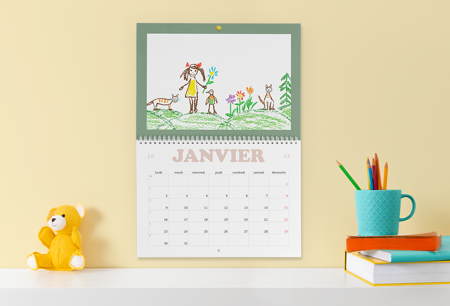 Numérisez ou photographiez les œuvres de votre enfant et utilisez-les pour créer un calendrier photos que vous chérirez à tout jamais. Voilà aussi une excellente idée pour un livre photo, comme le montrent ces exemples. Consultez ce blog pour découvrir nos meilleurs conseils en matière de numérisation.
