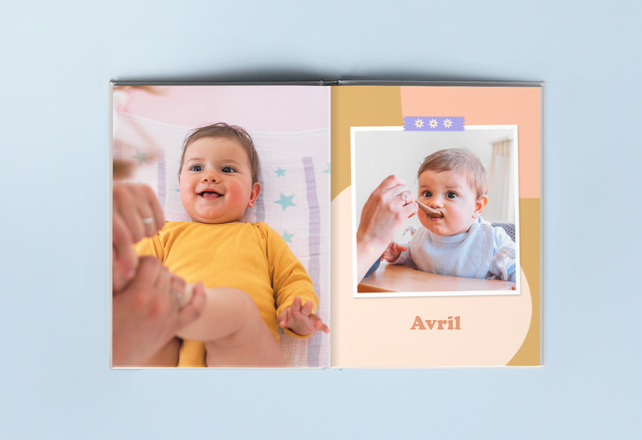 Les cadres sont un excellent moyen pour donner vie et apporter une touche ludique aux images dans le livre photo d’anniversaire de votre enfant. Notre sélection de cadres dans notre éditeur de livres photo comporte des formes et des tailles différentes, ainsi que des couleurs et des motifs variés. Jouez avec le cadre autour de la photo de votre choix et trouvez l’ajustement parfait. Les cadres sont également un excellent moyen d’ajouter un peu de cohérence au design de votre livre photo.