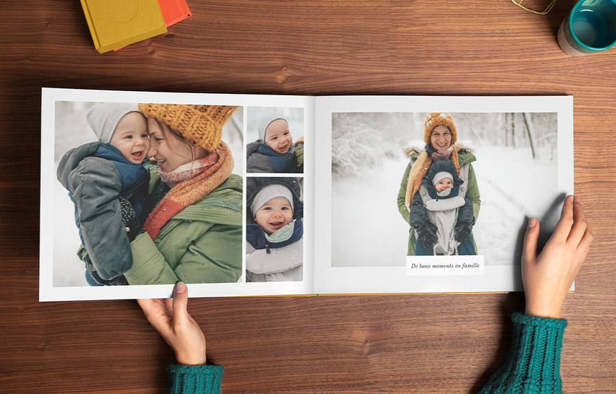 Nous avons simplifié le processus de création avec des livres photo entièrement personnalisables et des options concernant le format, le nombre de pages, les styles de couverture et plus encore. Pour savoir à quel point c’est facile de créer avec monalbumphoto, consultez notre guide simple en cinq étapes qui vous permettra de créer votre livre photo pour bébé de A à Z.