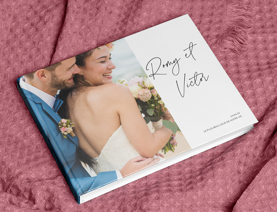 Un livre photo personnalisé est, sans doute, l’un des meilleurs cadeaux pour célébrer votre anniversaire de mariage. Si vous souhaitez revivre les plus beaux moments de votre mariage, optez pour l’un de nos livres photo sur le thème du mariage. Pour vous lancer, il suffit de sélectionner l’un des 30 designs de livre photo de mariage et de télécharger vos plus belles photos de mariage.