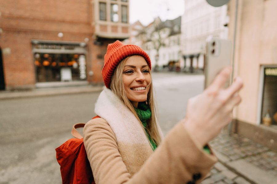 Lorsque nous sommes derrière l’appareil photo (ou avec un smartphone), il est tout à fait normal d’avoir tendance à photographier les autres. Mais, les rues de la ville sont également parfaites pour créer des autoportraits sympas. Dénichez des bâtiments modernes avec des surfaces réfléchissantes, comme du verre ou du métal poli, ou des fenêtres qui réfléchissent votre image et qui laissent transparaître l’intérieur. Photographiez votre reflet dans des miroirs, des flaques d’eau, des étangs et des lacs, ou motivez vos amis et les membres de votre famille à prendre une photo de groupe originale, par réflexion.