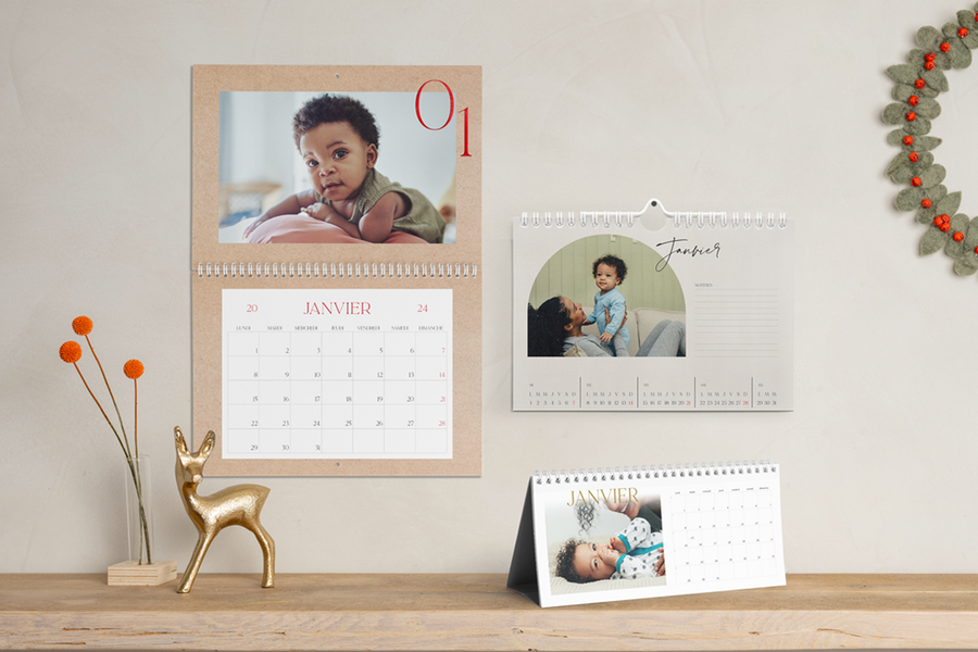 Aidez les parents à s’organiser en leur offrant un calendrier attentionné, pour le premier Noël de bébé. Outre son utilité tout au long de l’année, un calendrier de bébé célèbre chaque mois les moments les plus précieux ! Commencez par passer en revue les plus belles photos du bébé, des plus drôles aux plus authentiques, et classez-les selon vos préférences. N’hésitez pas à personnaliser le calendrier en soulignant les dates importantes, comme les anniversaires ou les grandes étapes de la vie du bébé, et rendez-le encore plus unique !