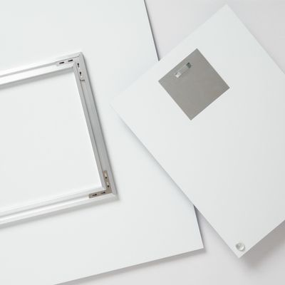 Grâce au point de suspension, accrochez facilement votre Tableau PVC. Des coussinets en plastique, derrière votre tableau, veillent à ce que celui-ci reste bien parallèle au mur. Les Tableaux PVC de grande dimension (à partir de 70 x 70 cm) sont livrés avec armature rectangulaire (p.v.c 35€).
